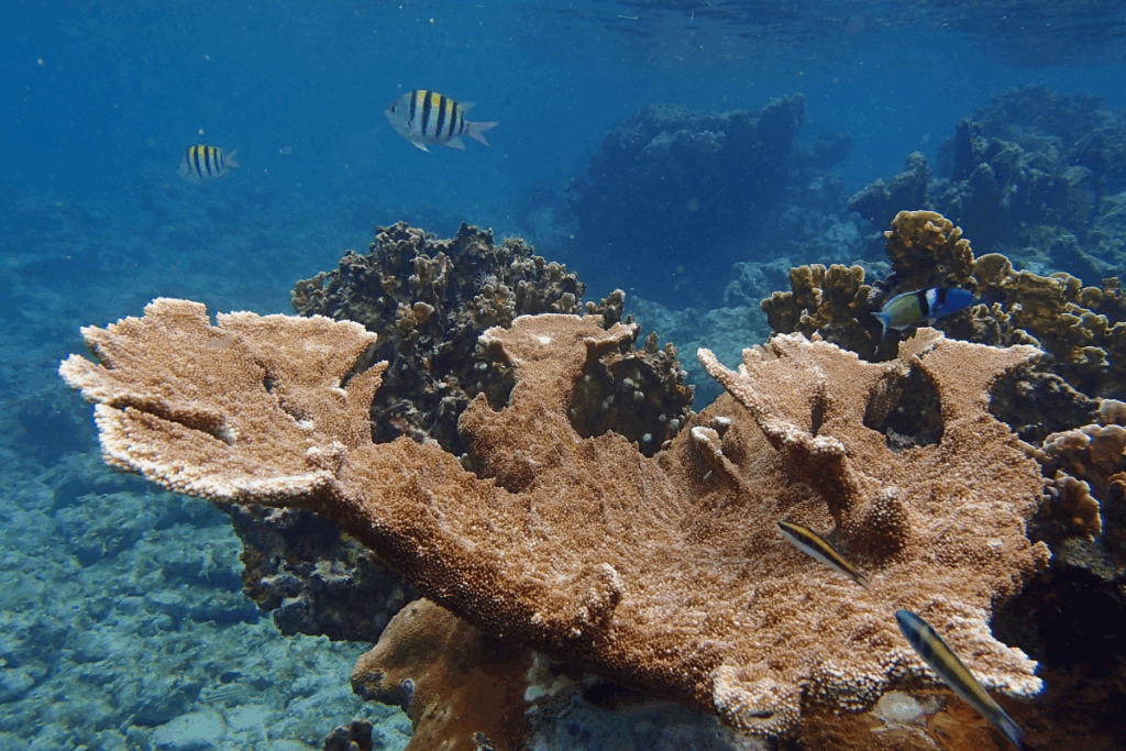 A boat-only snorkel site off the south shore, Cow & Calf Rocks feature towering rock formations above and below the surface. Expect deeper water, coral-covered walls, and big fish. It’s a favorite for more experienced snorkelers and offers something different from the usual shallow reef.